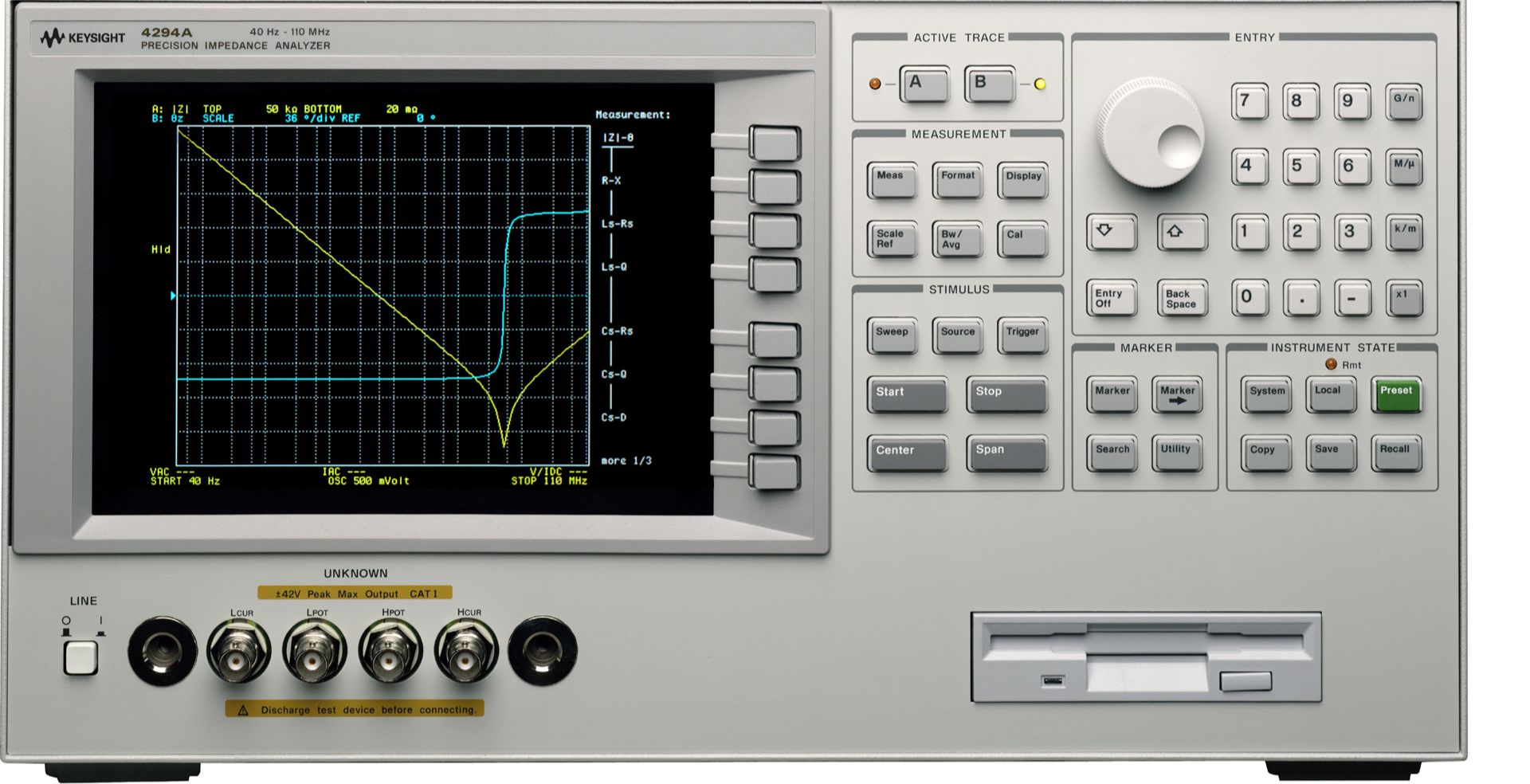 The 43961A RF Impedance Test Kit provides the capability to measure impedance parameters of 1-port devices with the 4395A Option 010 (100 kHz to 500 MHz ) or the 4396B Option 010 ( 100 kHz to 1.8 GHz ). The test port is a 7-mm connector and can be used with the 16191A, 16192A, or 16193A test fixture. The 43961A includes open/short/load calibration standards, and the test fixtures are optional.